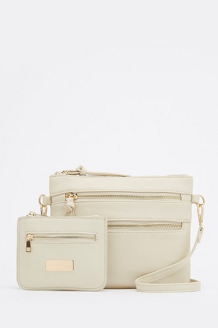 Cream Clean Zip Cross Body Bag And Purse Set Studio
