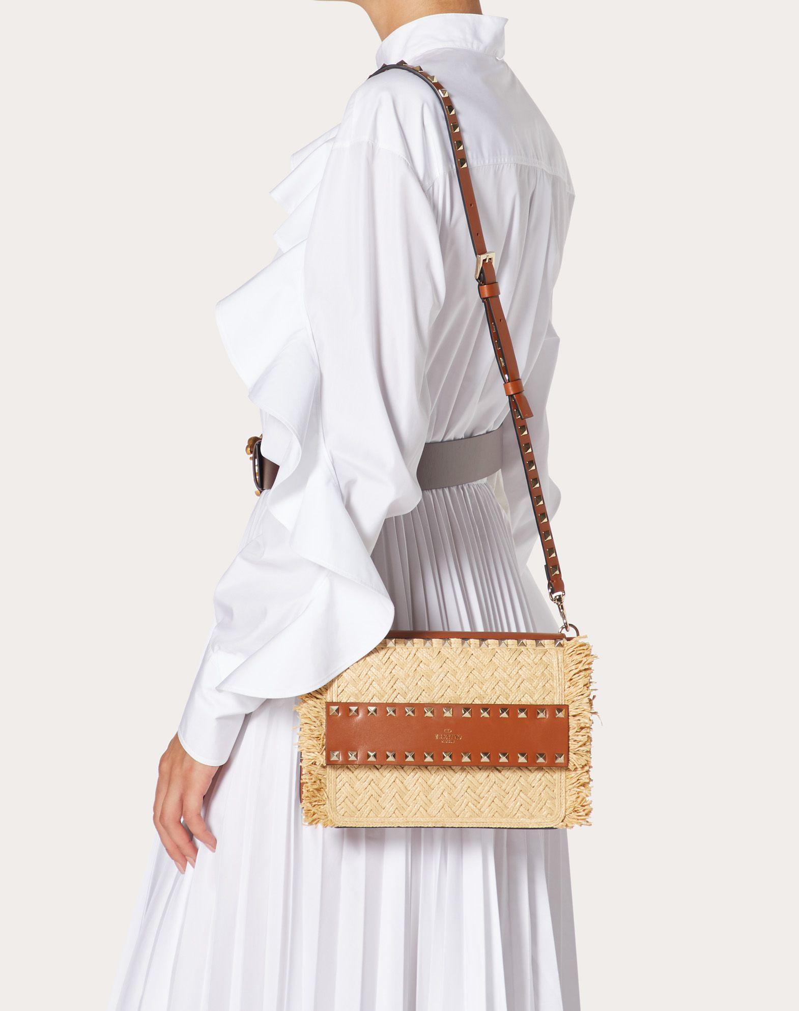 Valentino Leather Small Rockstud Raffia Crossbody Bag Lyst