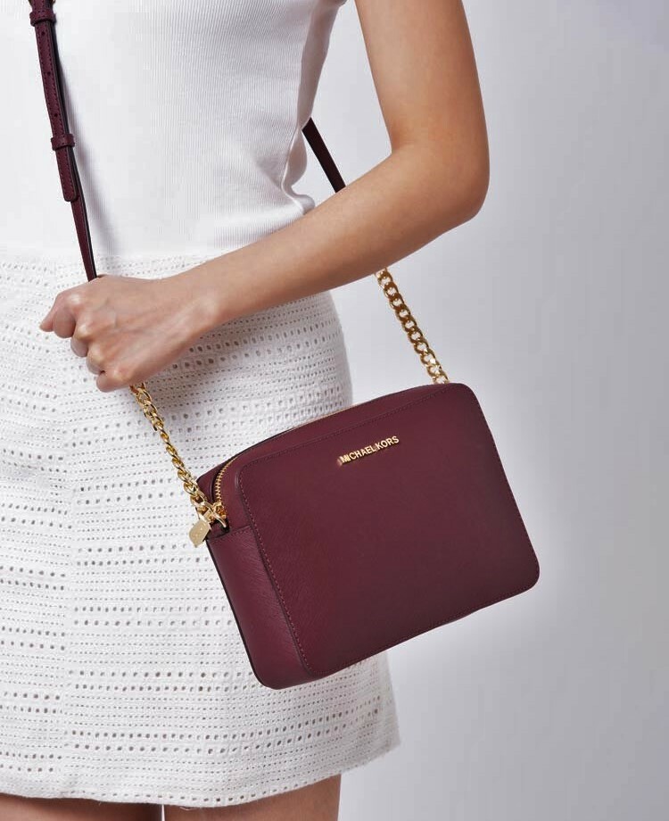 Michael Kors Jet Set Saffiano Crossbody Burgundy Luxury Bags