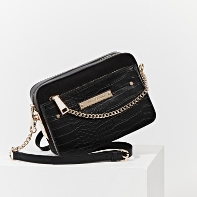 Black Side Chain Boxy Crossbody Bag River Island