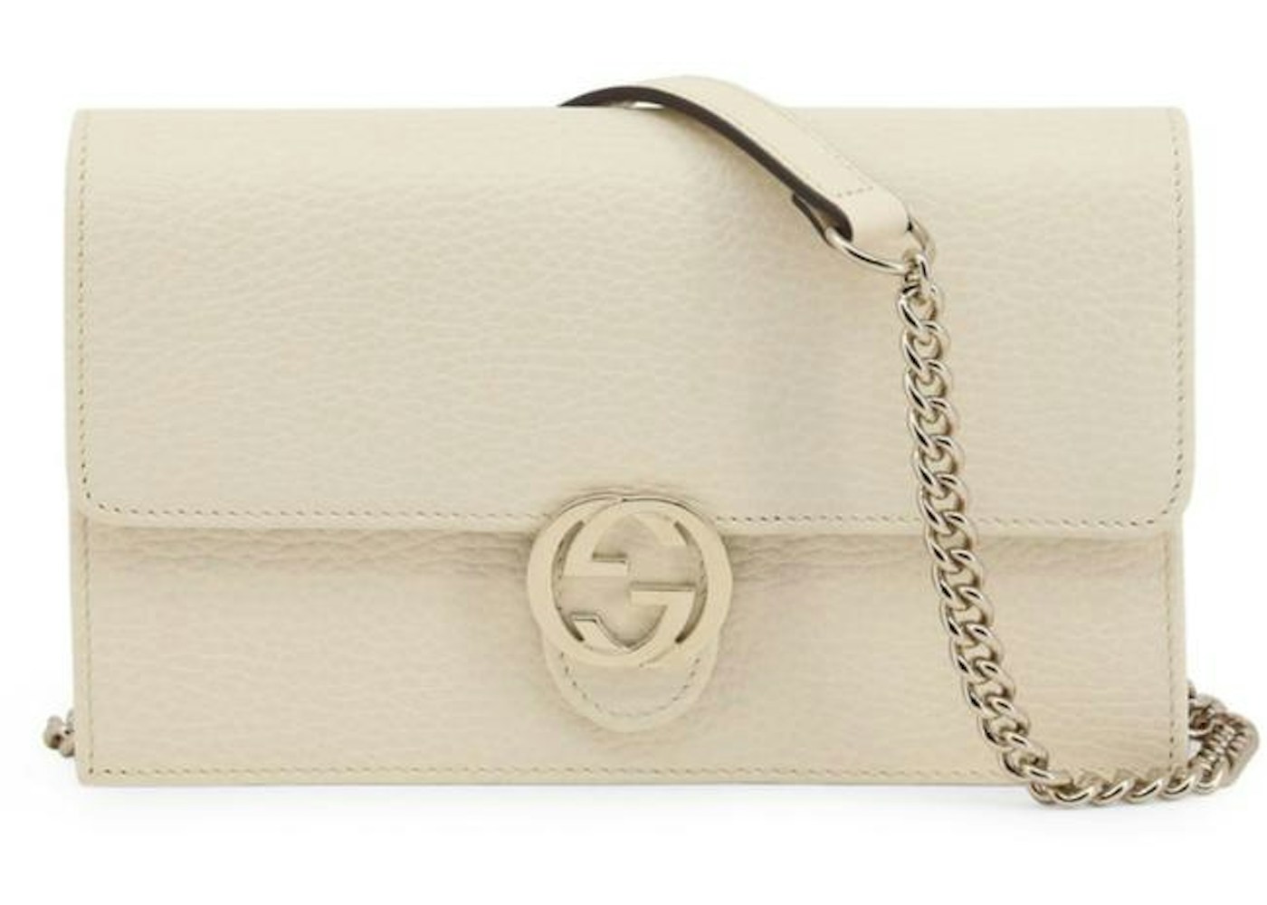 Gucci Interlocking Gg Chain Crossbody Bag White In Leather With Gold Tone