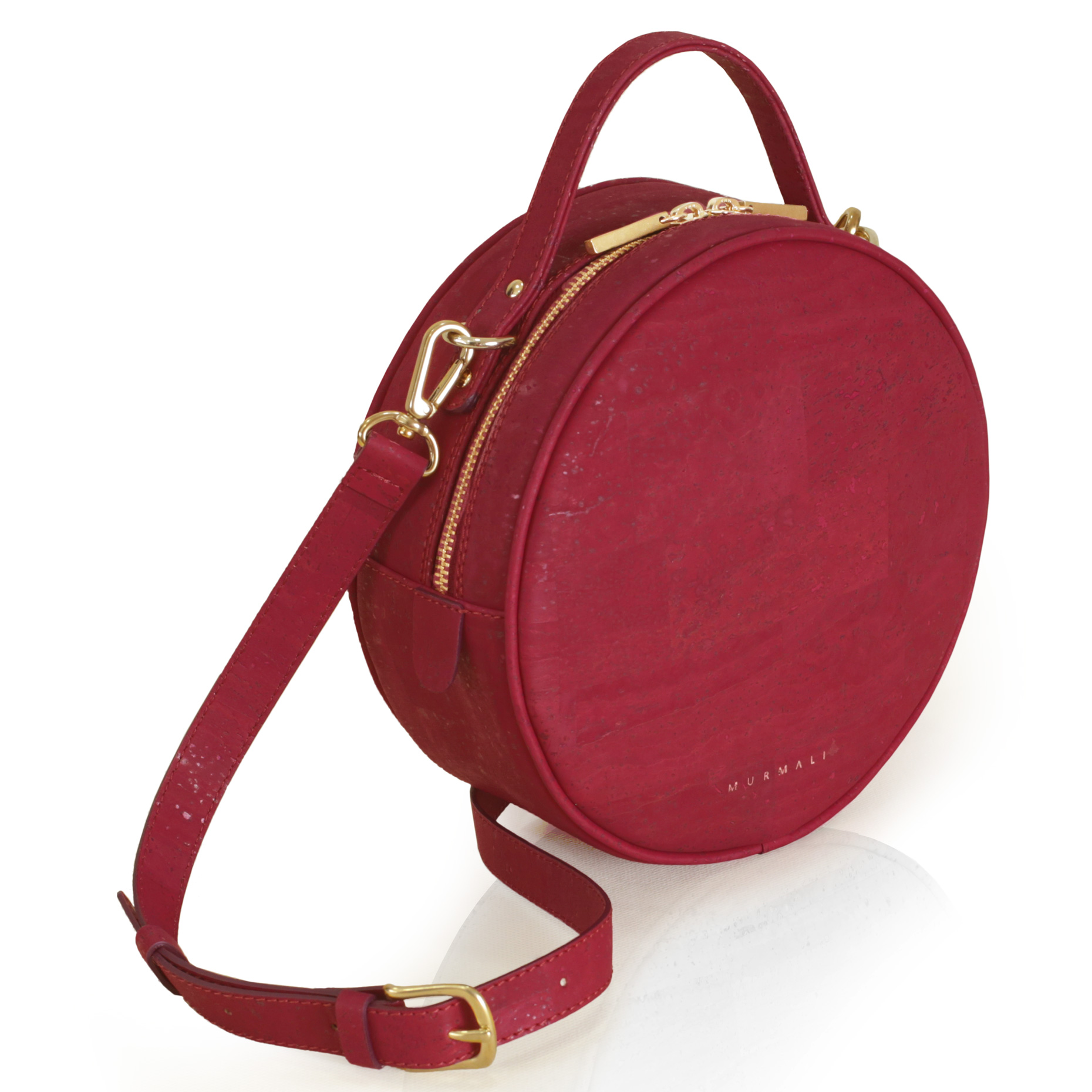 Circle Crossbody Bag Handcrafted In Cork Fabric Beta Burgundy